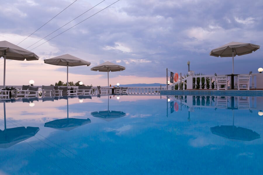 Хотелот Акти **** на 30 метри од песочна плажа. Има подземен премин до прекрасната плажа со ситен песок и постепено задлабочување на водата. Секоја соба има еден дупол кревет и два единечни кревети на спрат A115,A116,A117,A118,A119,B145, и една соба има еден дупол кревет и два единечни кревети бр.B142, wi-fi, тв, клима уред, мини фрижидер, телефон, купатило со вц, фен, крпи големи за на плажа и туширање и мали за лице. Има 2 ресторани за доручек со поглед на море и ресторан за вечера со поглед на море. Приватна плажа со лежалки и чадори за гостите од хотелот кои се користат со нарачка на пијалок. Бар покрај базен, бар на плажа, безжичен интернет на плажа. Базен отворен со посебен дел за деца. Простории за друштвени игри пинг-понг, гејмерски игри, цртање…. лифт. Покриен паркинг за возила, мини маркет, сеф, 24 часа рецепција и перална.